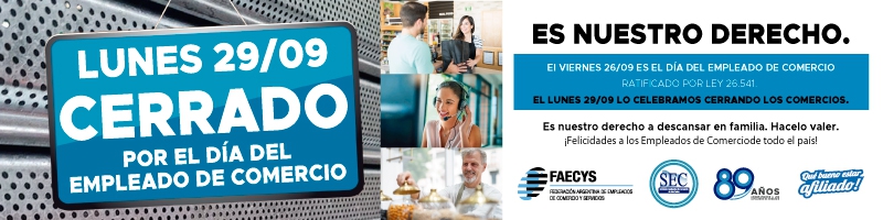 Hoy nuestro sindicato mantiene su carácter de filial a la FEDERACIÓN ARGENTINA DE EMPLEADOS DE COMERCIO Y SERVICIOS (FAECYS) estrechando dichos vínculos en pos de mejorar el cumplimiento de sus fines y coadyudar al logro de los principios de igualitarismo solidaridad y justicia social.